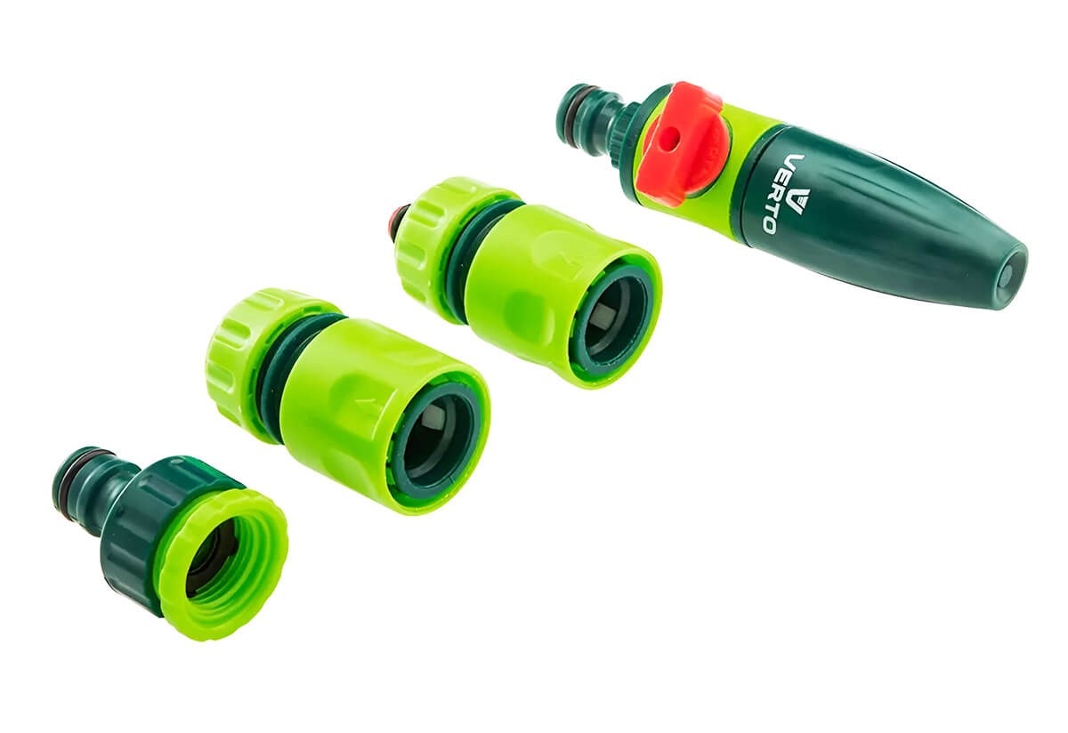 Набор VERTO 15G711 — это компактный комплект для полива, рассчитанный на шланги 1/2". В него входят прямой ороситель с регулировкой струи и блокировкой подачи воды, соединительные муфты и адаптер на кран. Все элементы выполнены из прочного пластика, обеспечивают надёжное соединение и удобство использования. Набор помогает быстро организовать простую систему орошения, позволяет менять интенсивность полива и легко контролировать подачу воды без перекрытия крана.