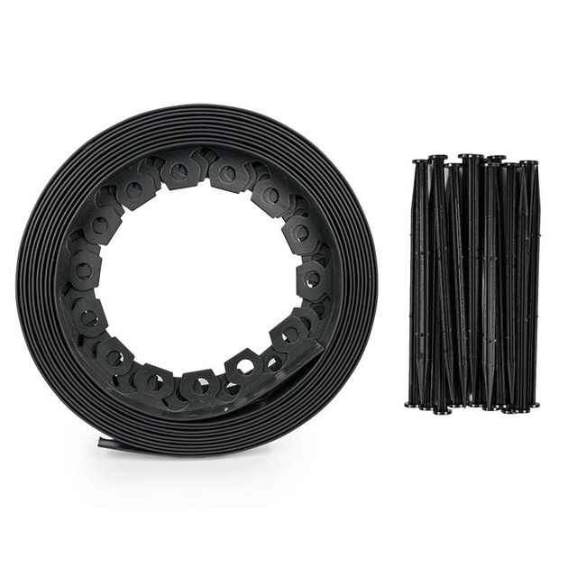 Бордюр садовый изготовлен из гибкого пластика, что позволяет легко формировать линии изгиба разного радиуса.