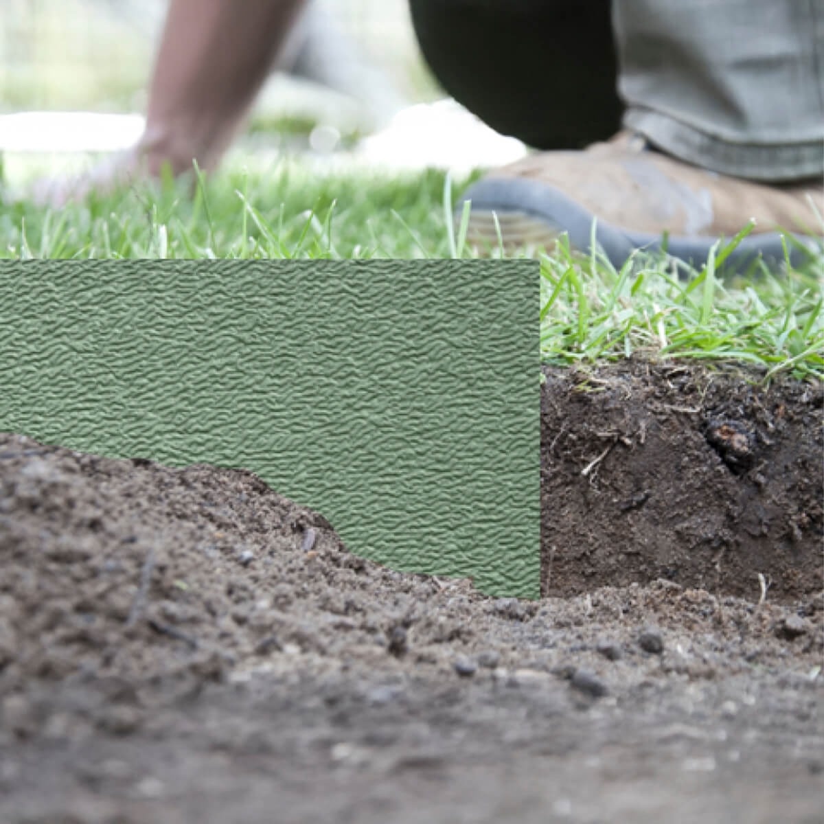 Массивный и очень крепкий бордюр препятствует прорастанию травы, используется для отделения газона от участков клумб и сада. Бордюрная лента имеет фактуру апельсиновой шкурки.