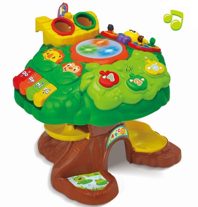 Древо Мудрости учит буквам, цветам, формам, плодам. В книге издаются нежные мелодии, а с помощью фортепиано дети могут выучить ноты и цифры.