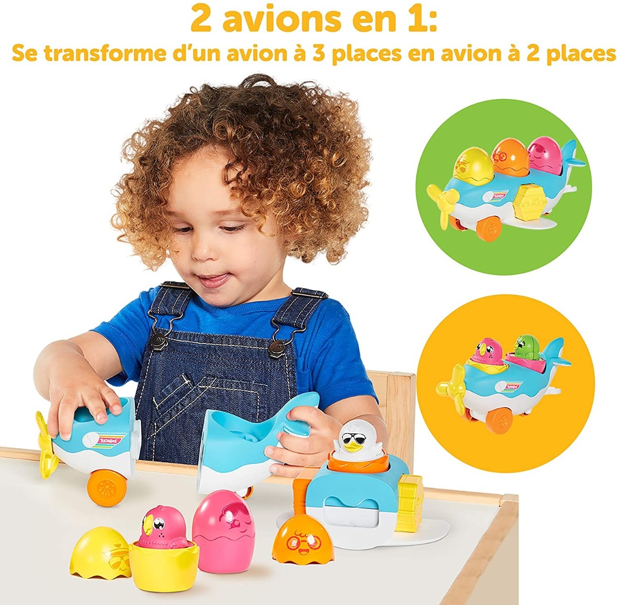 Самолет 2 в 1 дает волю воображению! Забронируйте место и откройте для себя множество способов играть. Этот самолет с вращающимся винтоми и колесами, съемная центральная часть означает, что вы можете укоротить или удлинить самолет, чтобы вы могли летать с двумя или тремя друзьями-яйцами на борту.