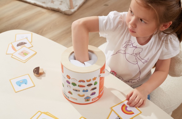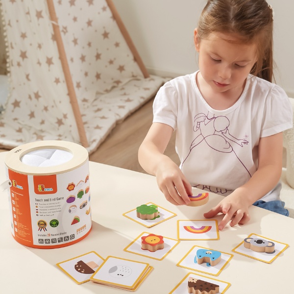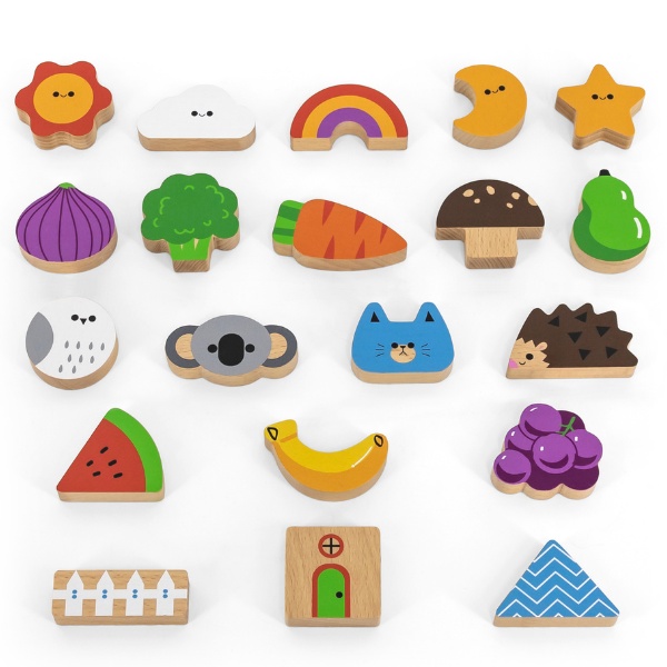 В ярком ведерке находится 20 разноцветных фигурок, изображающих животных, овощи, фрукты, солнце, облако, звезду, луну. В комплекте также имеются 20 карточек с изображениями. Ребенок, вставляя руку в отверстие, расположенное на крышке, ищет блок и сопоставляет его с соответствующими картинками. Эта замечательная игра от Viga способствует развитию зрительно-моторной координации у малышей, укрепляет социальные навыки и поддерживает моторику рук. В игру могут играть несколько игроков, что предоставляет отличную возможность провести время весело и с пользой.