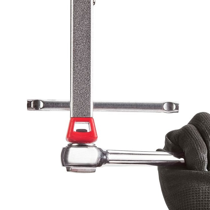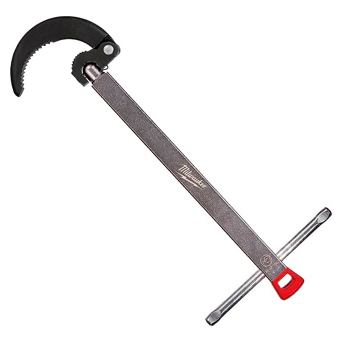 Ключ для гибкой подводки Milwaukee (48227002) - используется для монтажа и демонтажа гибкой сантехнической подводки. Размер клещей регулируется от 32 до 65 мм, также ключ совместим с трещоткой посадкой 3/8". Телескопический дизайн. Перекидная рукоятка более удобная, чем квадрат. Легконастраиваемая рукоятка, лучшая в своем классе.
