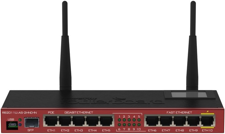 MikroTik RB2011UiAS-2HnD-IN — это самый производительный Wi-Fi роутер от производителя MikroTik. Он имеет мощную начинку, две антенны по 4 дБи и выходную мощность 1 Вт!