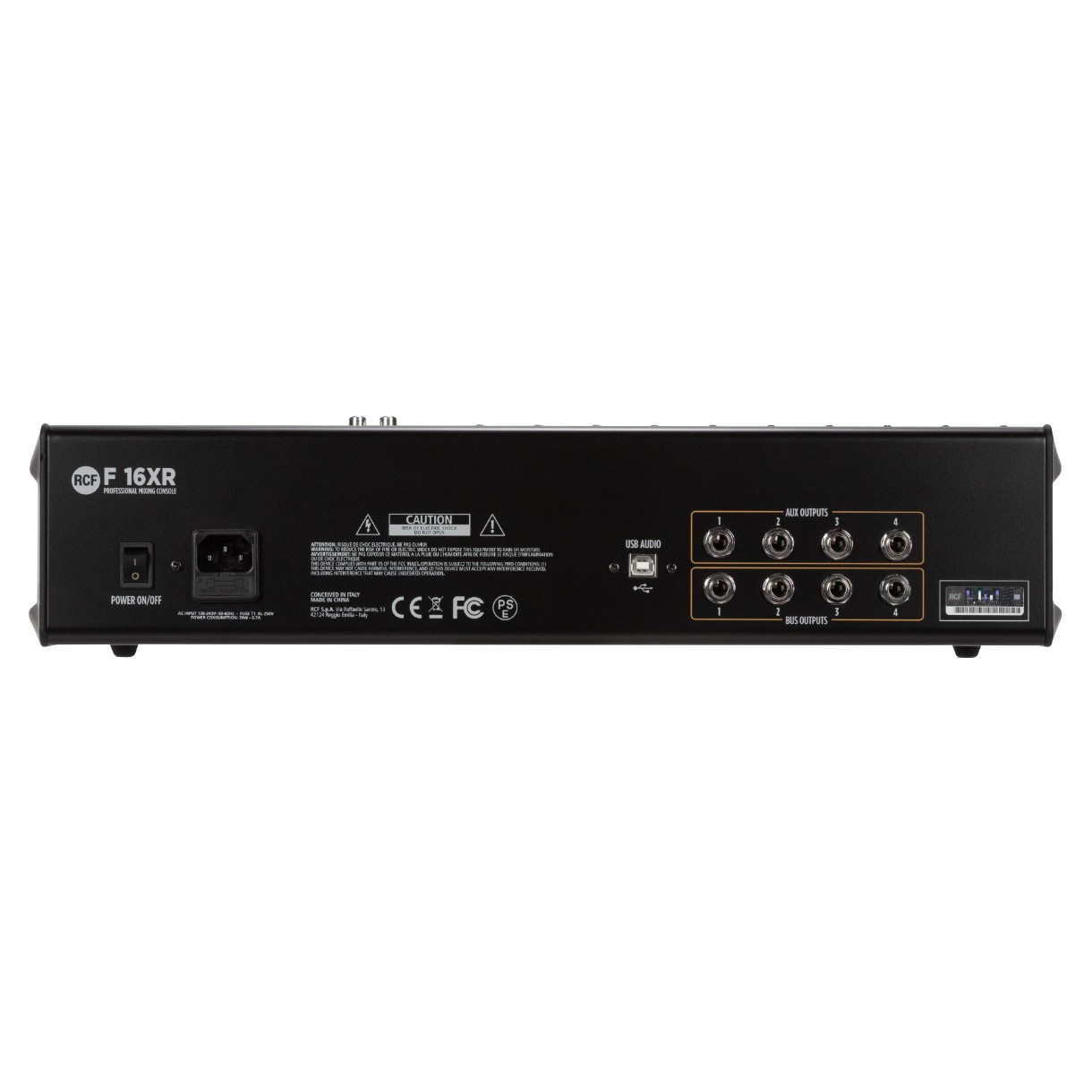 Микшер F 16XR имеет 10 микрофонных входов, 4 моно линейных входа, 4 стерео линейных входа, плюс