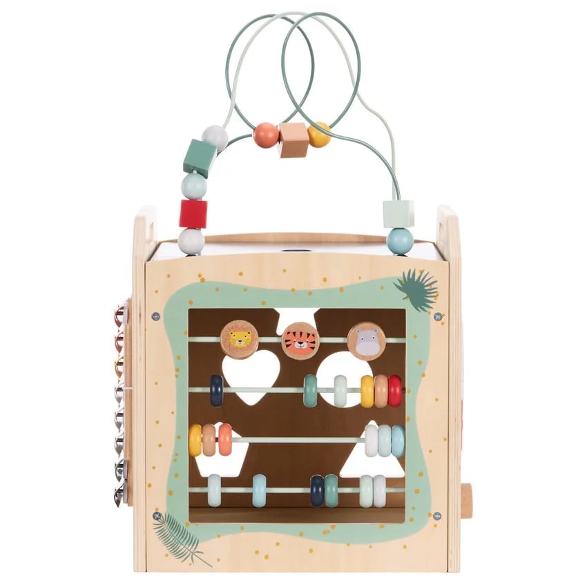Часы развлечений гарантированы с развивающим кубом из дерева Happy Wild.