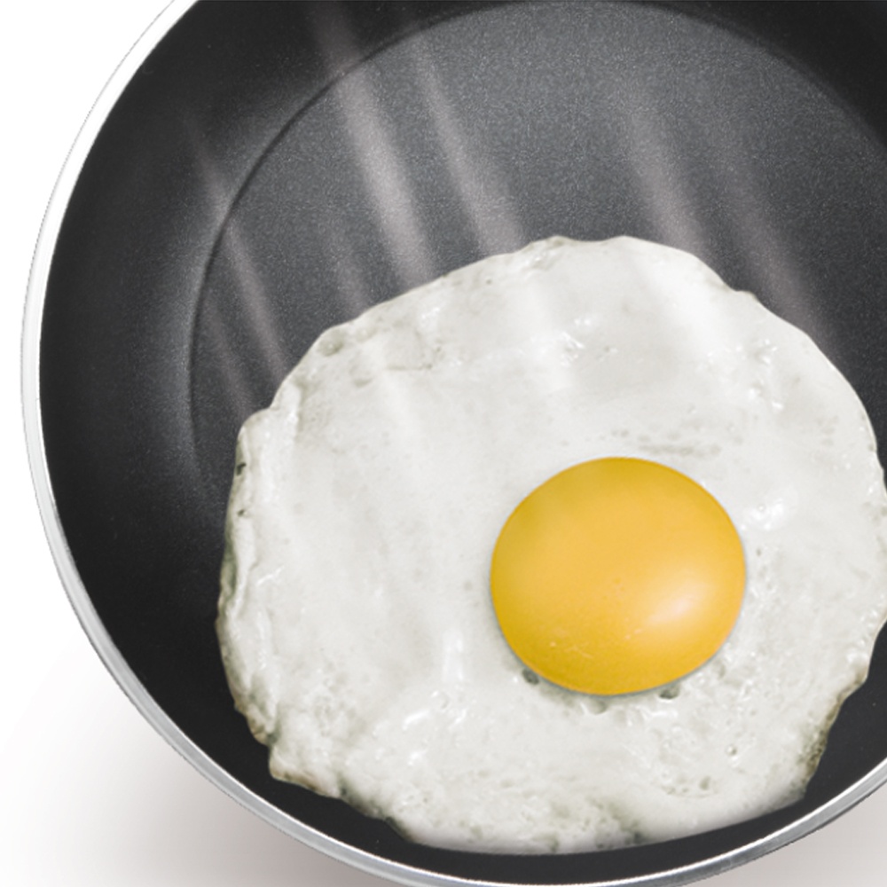 Посуда изготовлена из штампованного алюминия, обладающего высокой теплопроводностью, которая способствует идеальному приготовлению блюд. Внутренняя поверхность сковород имеет двухслойное антипригарное покрытие Xylan Plus, исключающее даже незначительное пригорание продуктов в процессе жарки. На стенках имеются желобки для удобного слива соусов или масла.