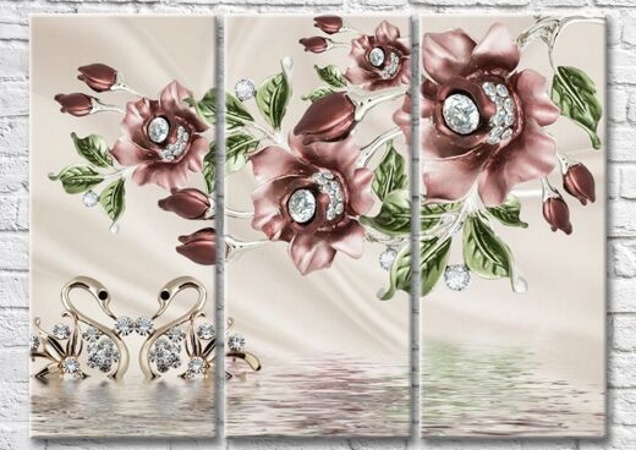Картина Magic Color Red Flowers and Gemstone Swans (3517859)