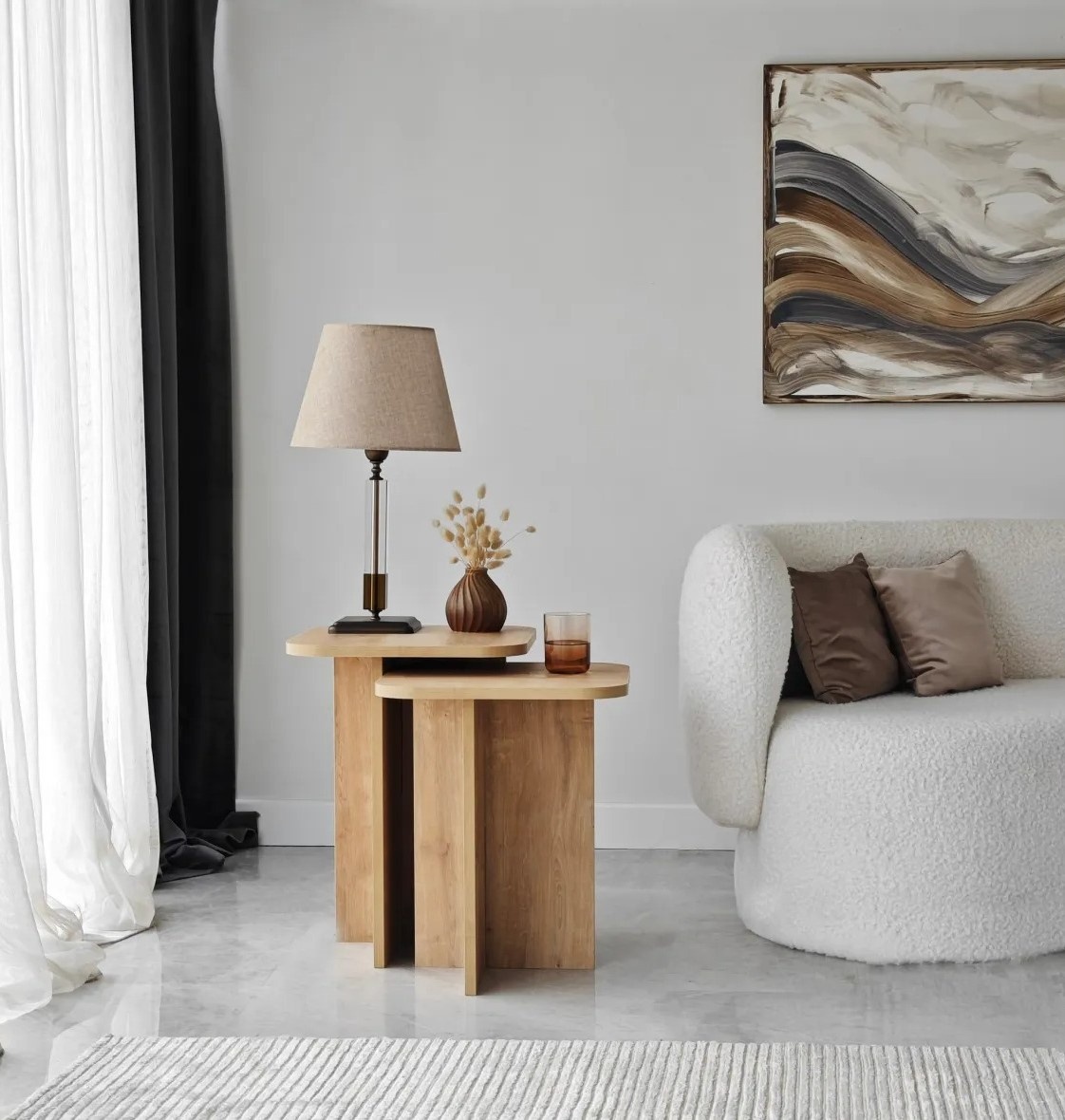 Две разные по размеру тумбы обеспечивают удобное пространство для хранения необходимых предметов. Книга, чашка кофе или декоративный элемент — всё будет всегда под рукой и представлено аккуратно.