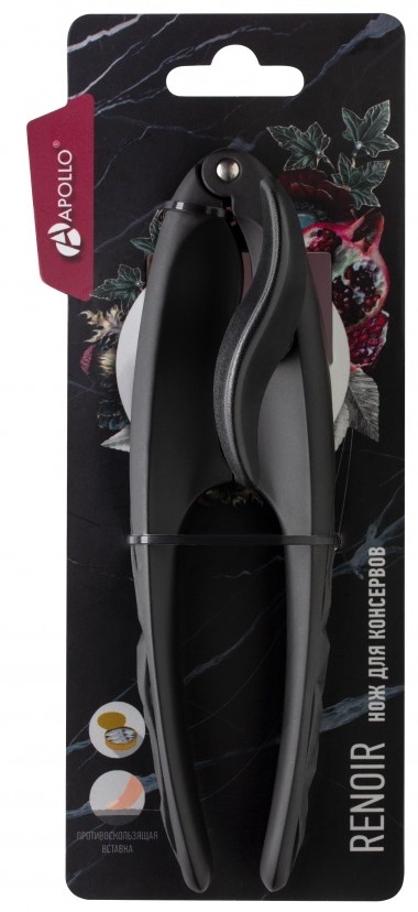 С помощью ножа для консервов Renoir вы сможете открыть любую жестяную консервную банку. Использование этого приспособления позволит вам сэкономить время и силы. Материалы изготовления: цинковый сплав с титановым покрытием, пищевой пластик TPR, пищевой пластик нейлон.