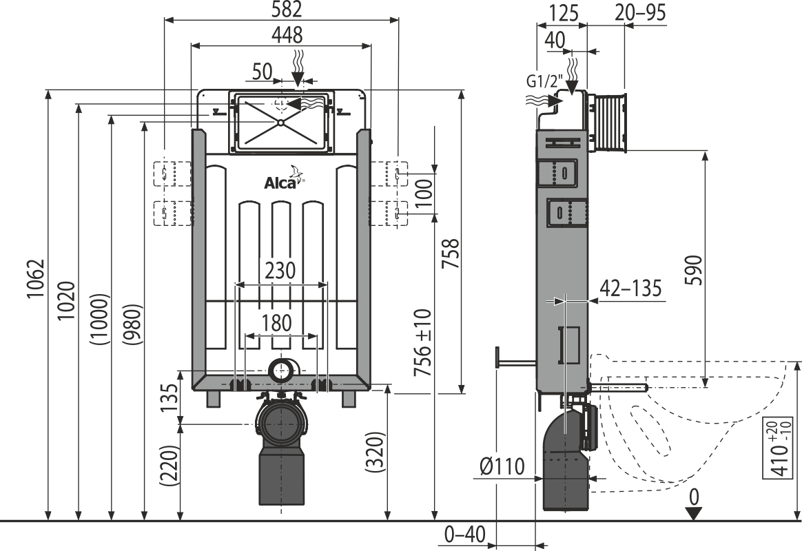 Инсталляция для подвесного унитаза Alcaplast Renovmodul AM115/1000
