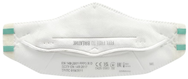 Низкое сопротивление дыханию: Более низкое, чем у масок FFP1, повышает комфорт при длительном использовании.