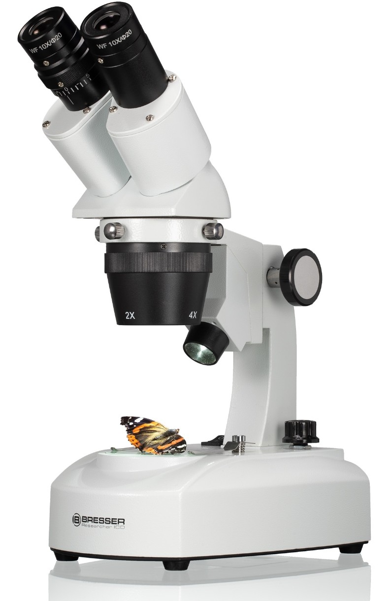 Bresser Researcher ICD LED 20x-80x комплектуется двумя парами широкоугольных окуляров с увеличением 10 и 20 крат. Имеется возможность диоптрийной корректировки, поэтому пользователь может настроить микроскоп для максимально удобной работы в соответствии с индивидуальными особенностями своего зрения.