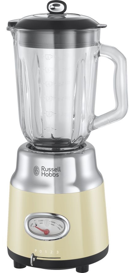 Стационарный блендер из новой линейки Retro от Russell Hobbs станет вашим незаменимым помощником на кухне. С ним вы с легкостью приготовите любимые смузи, коктейли, крем-супы, фруктовые и овощные пюре, смеси для детского питания. Вдохновленные винтажем был создан этот стильный ретро-блендер с современными характеристиками, чтобы порадовать вас действительно уникальным дизайном. Выполнен в нежном кремовом цвете со вставками из нержавеющей стали и ретро-шкале оборотов в минуту он станет стильным акцентом на вашей кухни. Стационарний блендер Retro имеет 3 скорости и режим «пульс». Мощность прибора 800 Вт. Ножи блендера изготовлены из нержавеющей стали. Стеклянная чаша имеет съемную крышку, которая позволяет добавлять продукты прямо во время работы блендера. Емкость чаши 1.5 л, прекрасно подойдет для ситуаций, когда необходимо приготовить большое порцию.
