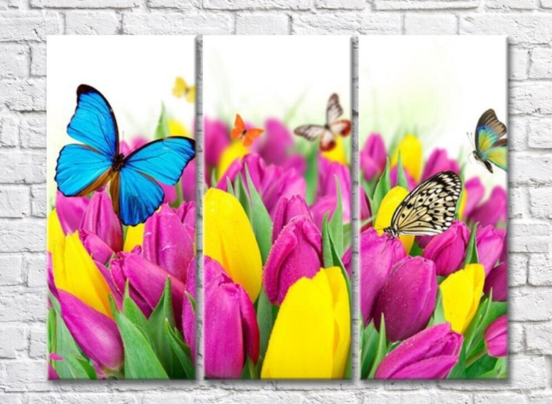 Картина ArtPoster Butterflies on Yellow and Purple tulips (500058)