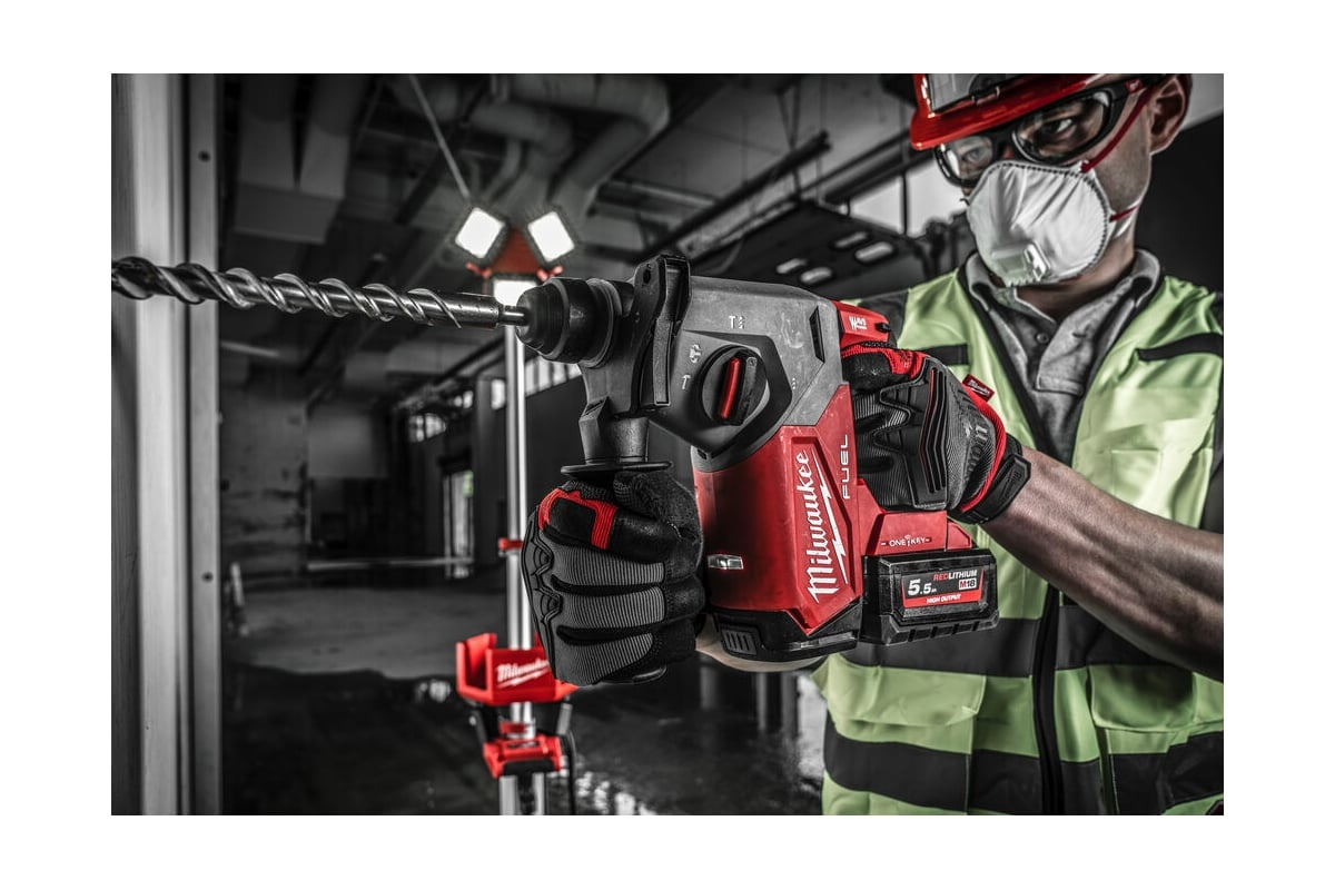 Аккумуляторный перфоратор Milwaukee SDS-Plus M18 ONE FH-0X 4933478886 обладает высокой производительностью благодаря бесщеточному двигателю POWERSTATE. Имеет 3 режима работы: бурение, долбление, сверление + дополнительный режим смены положения долота.