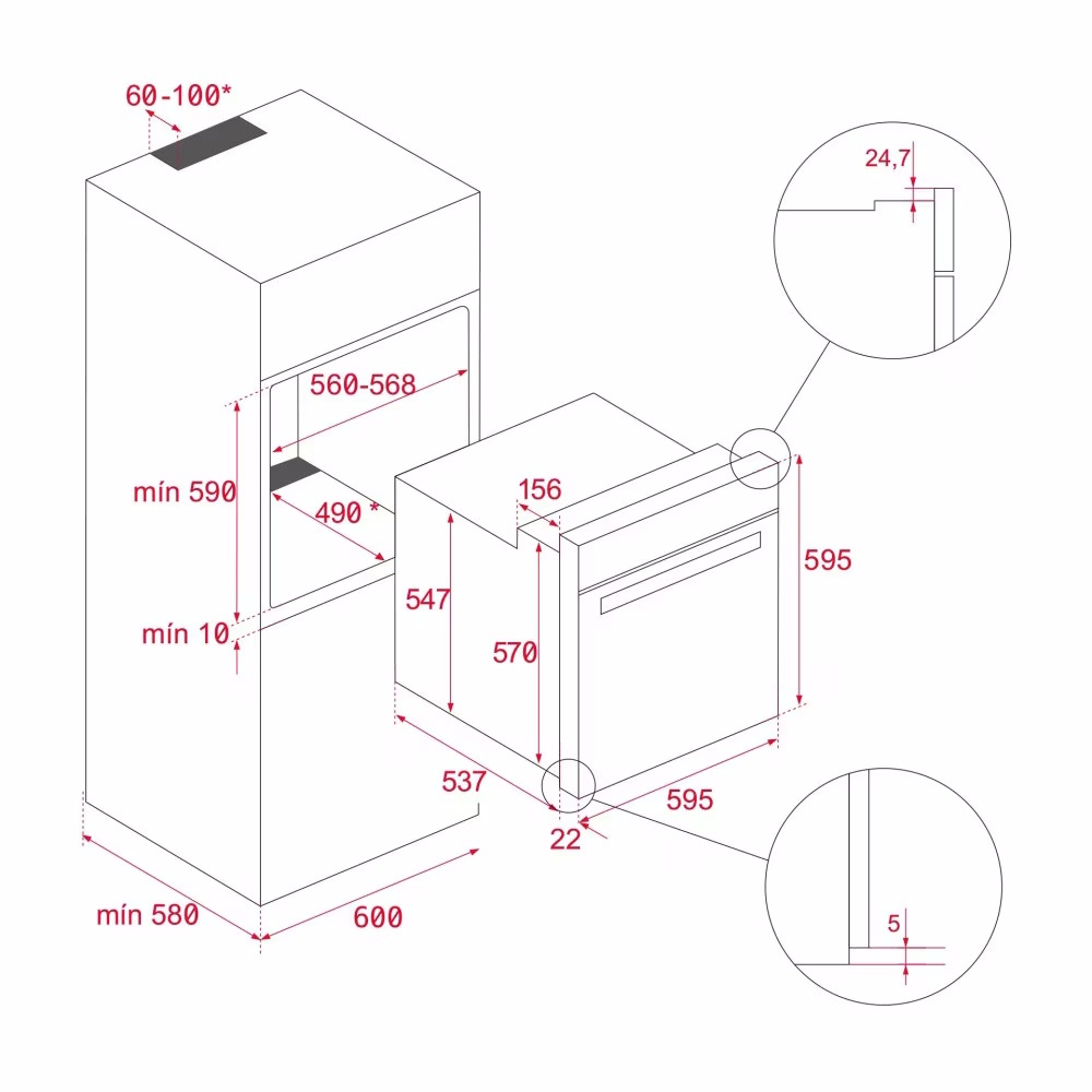 Размеры ниши для встраивания (ВхШхГ)59x56x49 см