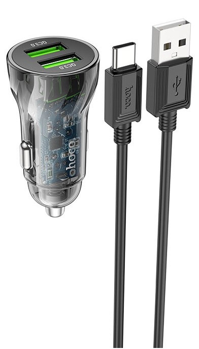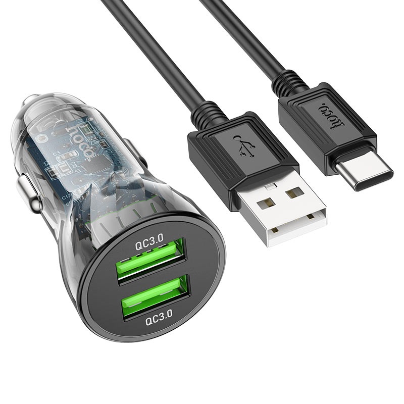 Автомобильная зарядка Hoco Z47 Transparent + Type-C Black