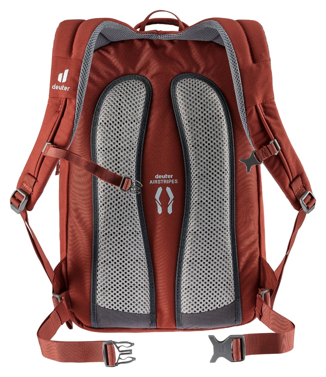— Система подвески DEUTER AIRSTRIPES — это два параллельных валика из трехмерной синтетической пены и сетчатой ткани, обеспечивающих необходимое для городского рюкзака соотношение вентиляции и удобной посадки на спине.