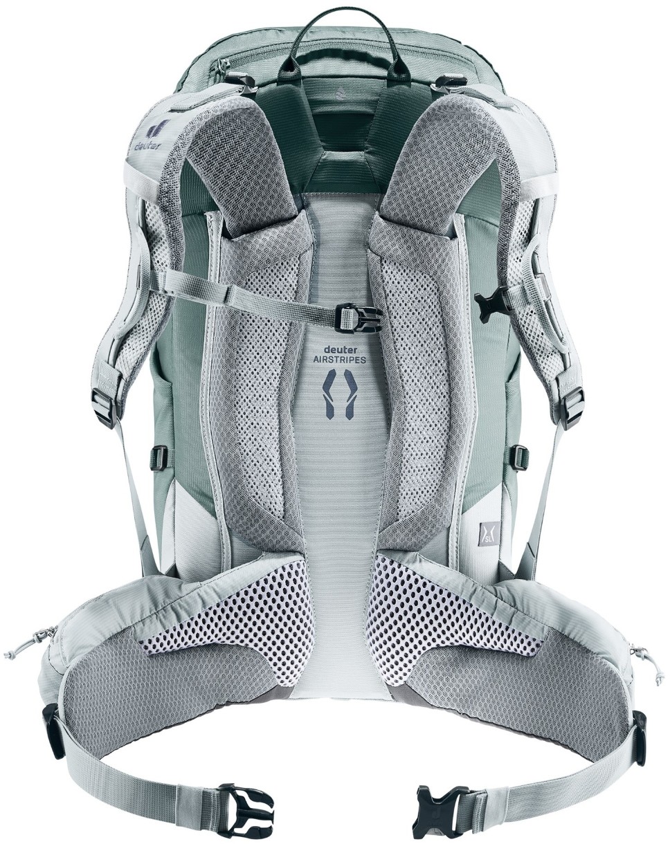 Deuter Trail Pro 31 SL — очень легкий, прочный и компактный женский рюкзак для туризма. Каркас спинки рюкзака из гибкого материала Derlin легко подгоняется под любую форму спины и обеспечивает рюкзаку стабильность, а также равномерное распределение нагрузки. Прекрасно подходит практически для любого вида активного отдыха. Свежая цветовая гамма делает эти рюкзаки ещё привлекательнее! Модель SL создана с учётом особенностей женской фигуры — зауженные плечевые ремни SL и набедренный пояс конической формы обеспечивают комфортную и точную посадку по спине.
