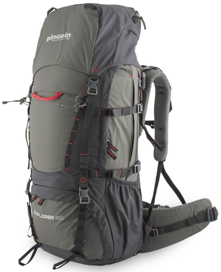 Pinguin Explorer 60 — уменьшенная версия популярного рюкзака. В новом варианте производитель уменьшил объем — так рюкзак стал востребованным у женщин. Хорошо вентилируемая подвесная система АВS оснащена регулируемыми плечевыми ремнями и съемным поясом для бедер. Компрессионные ремни осуществляют распределение нагрузки и коррекцию формы даже если рюкзак наполнен не полностью. Распускание ремней позволяет открыть основной отдел рюкзака. Набедренный пояс можно отстегивать и регулировать его положение по вертикали. Нижний отдел отделяется от главного при помощи отделяемой перегородки. Дождевой чехол — это дополнительный аксессуар ко всем рюкзакам Pinguin.