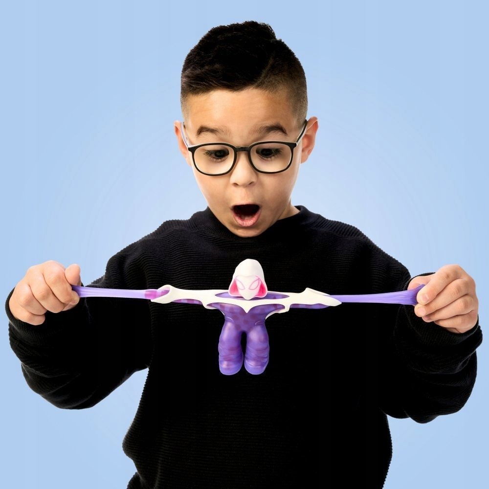 Фигурка Паука-призрака из серии Hero Pack имеет уникальную начинку из водных шариков Goo и очень губчатую. Вы можете растянуть тело героини до трех раз, и оно всегда вернется к исходной форме и размеру.