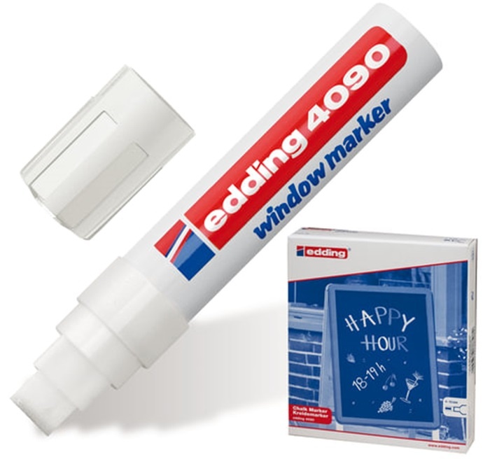 Применяется на гладких зеркальных поверхностях. Возможно использование маркера на деликатных пленчатых поверхностях, меловых досках. Чернила изготовлены на основе разведенного мела, не имеют запаха. Корпус — из прочного пластика.