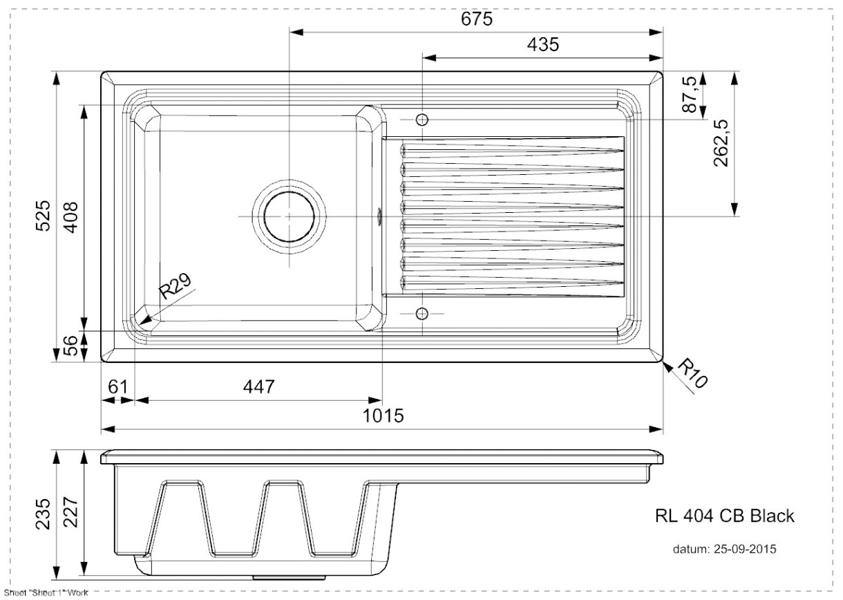 Размер мойки1015x525 мм