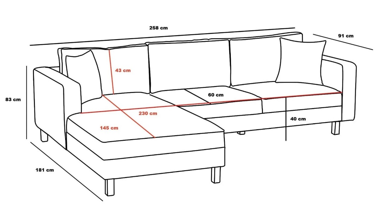 Угловой диван Trendy Berlin Cream/Black L 258x181x83cm GTR003522