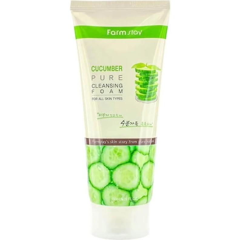 Очищающая пенка для лица FarmStay Cucumber Pure Cleansing Foam 180ml мягко и эффективно удаляет загрязнения, остатки макияжа и излишки себума, не пересушивая кожу. Формула с экстрактом огурца увлажняет, успокаивает и придаёт коже свежий и отдохнувший вид. (yesstyle.com)