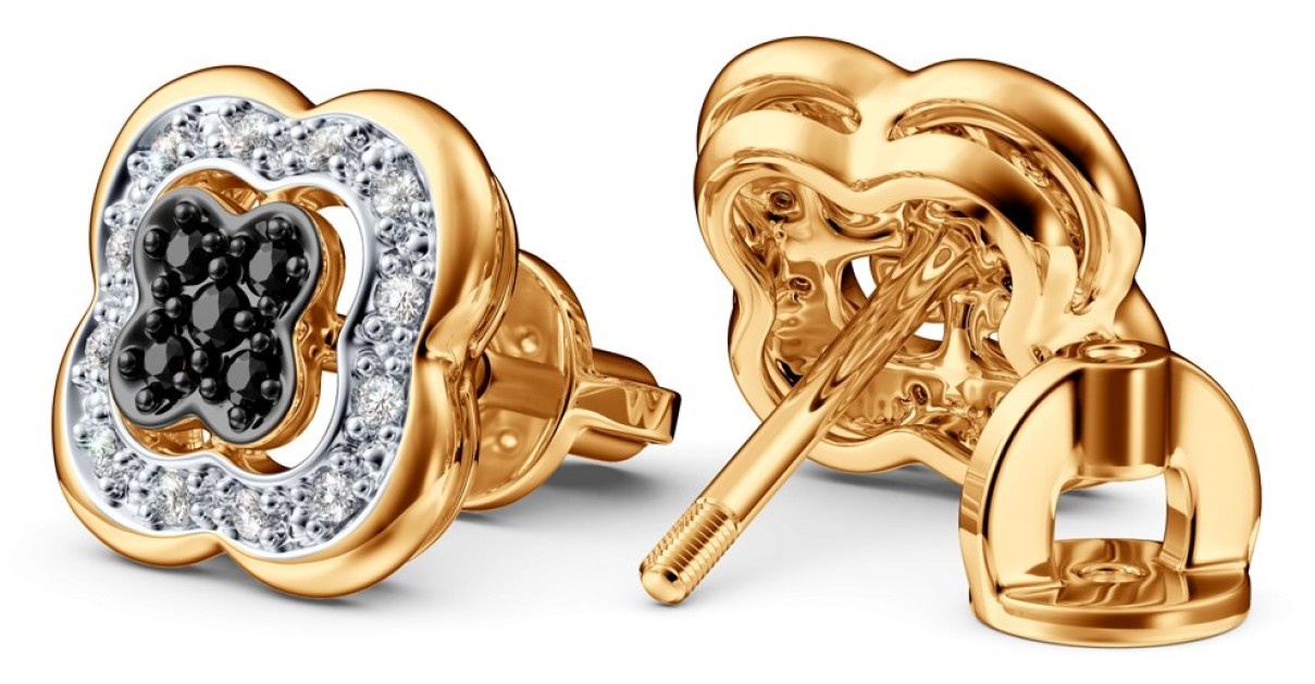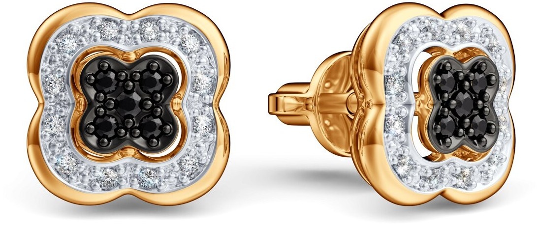Серьги из золота с бесцветными и чёрными бриллиантам Sokolov 7 020 058 2,47g