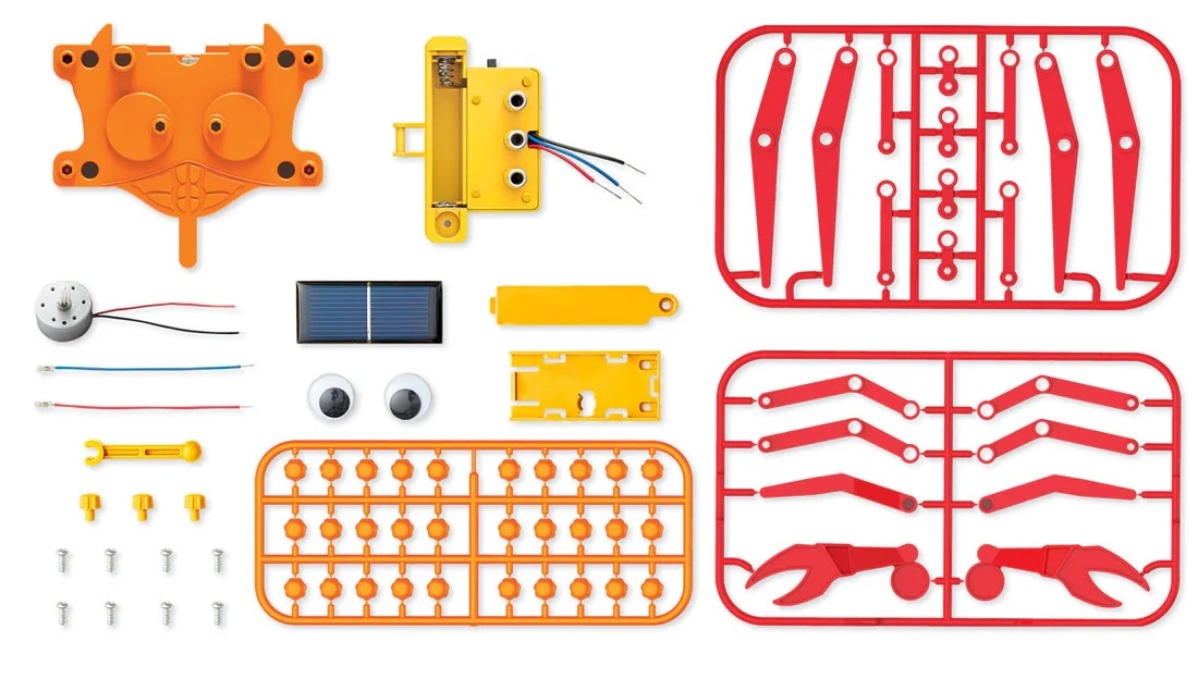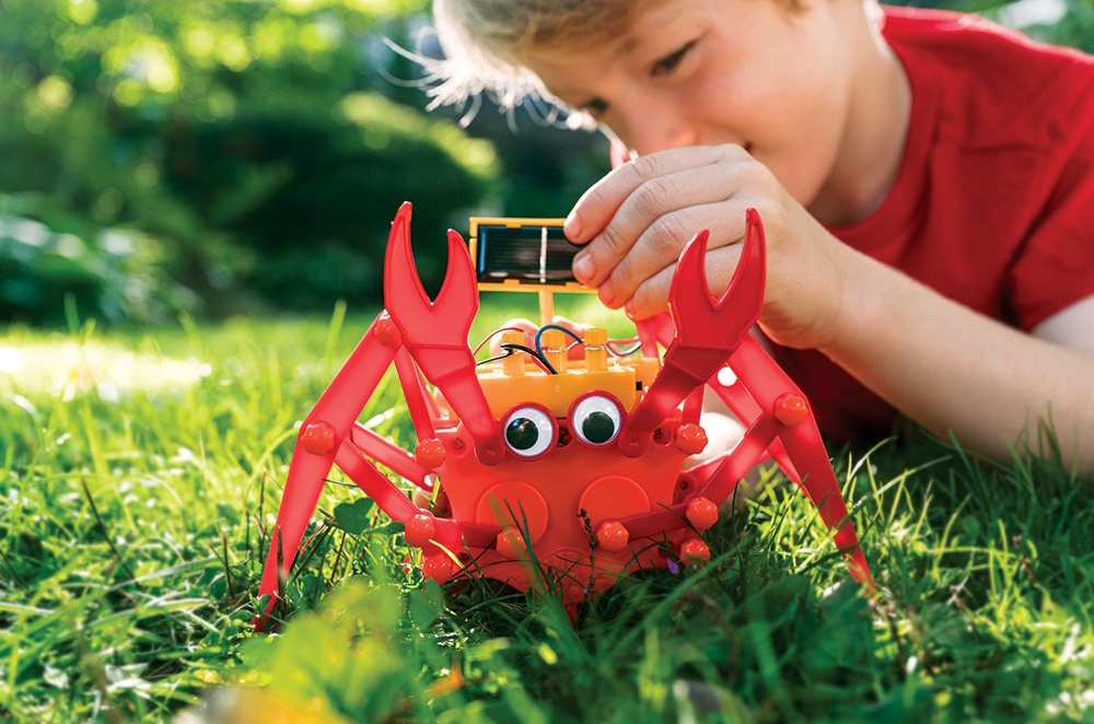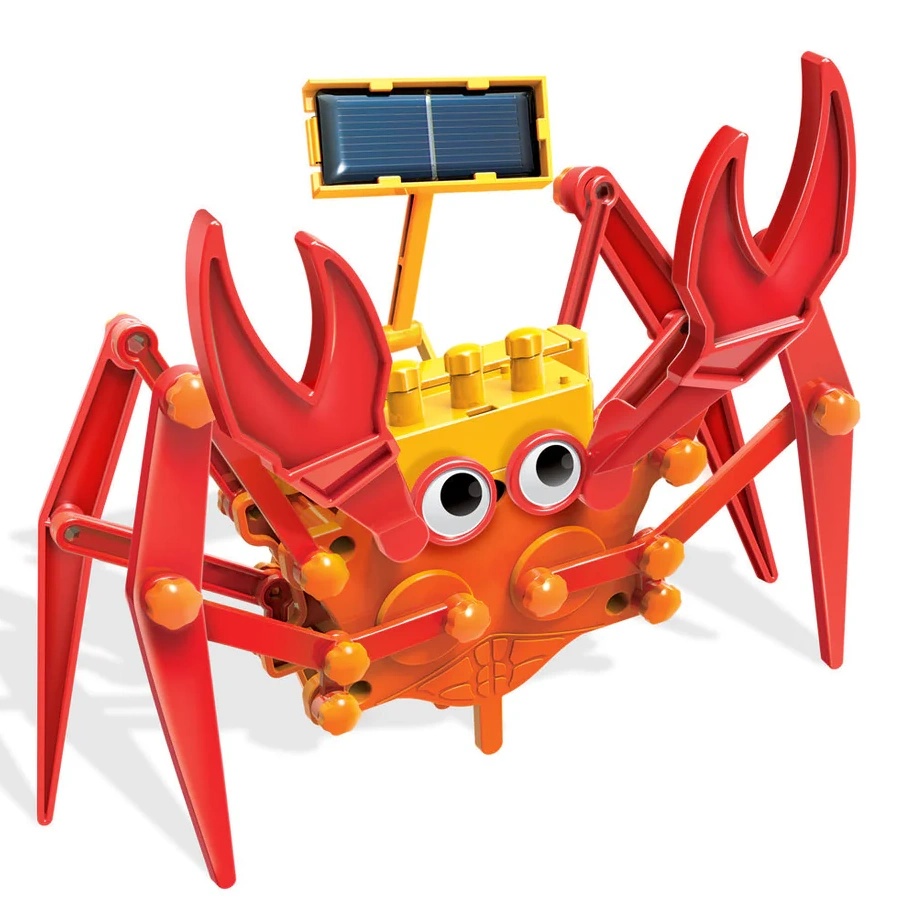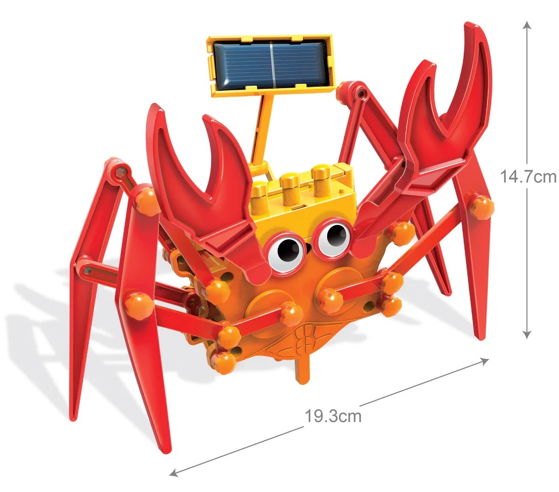 Этот умный гибридный краб ползает, используя солнечную энергию. Он также может питаться от батареек, когда нет солнечного света. Сначала постройте краба, а затем наблюдайте, как он ползает боком.