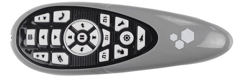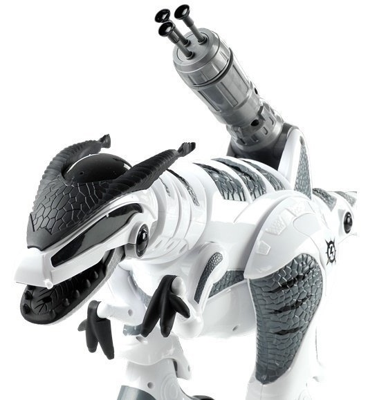 Динозавром управляет пульт, который удобно лежит в руке. Вы можете использовать его, чтобы отдавать ему команды, например двигаться, издавать звуки и стрелять из оружия!