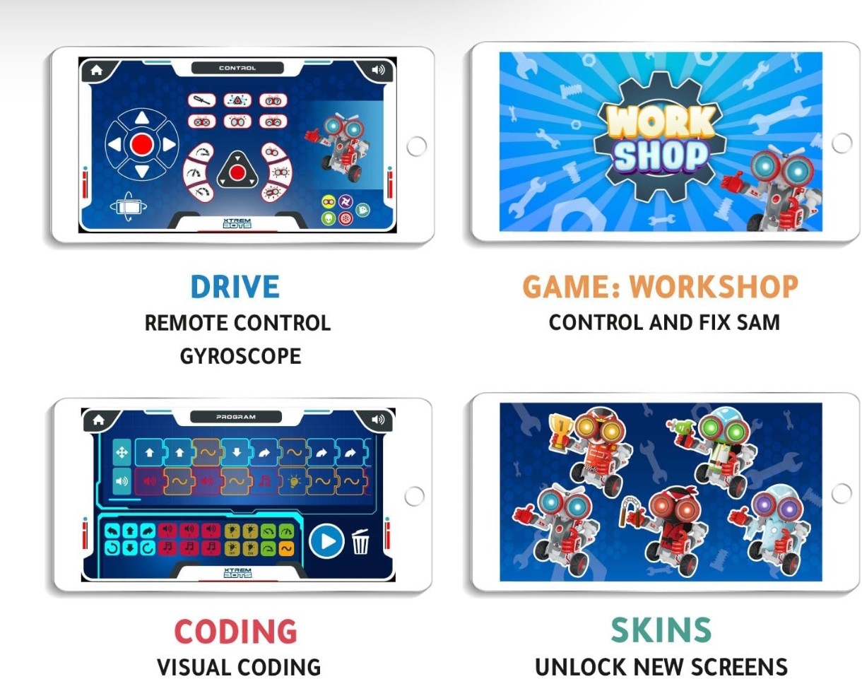 В режиме «мастерской» вы можете отточить свои инженерные навыки, обучаясь по ходу дела. Приложение поможет вам исправить любые ошибки и даже вознаградит вас уровнями опыта, открывая уникальных персонажей Сэма. Каждый персонаж имеет свой собственный набор звуков, музыки и разноцветных светодиодных фонарей, что делает игру еще более захватывающей.