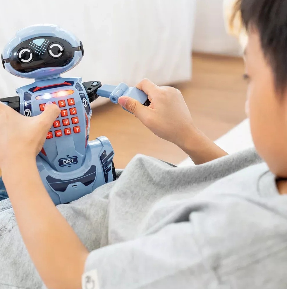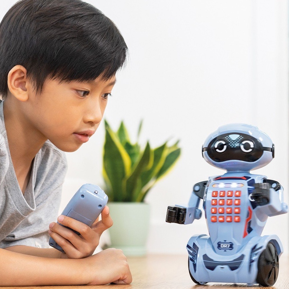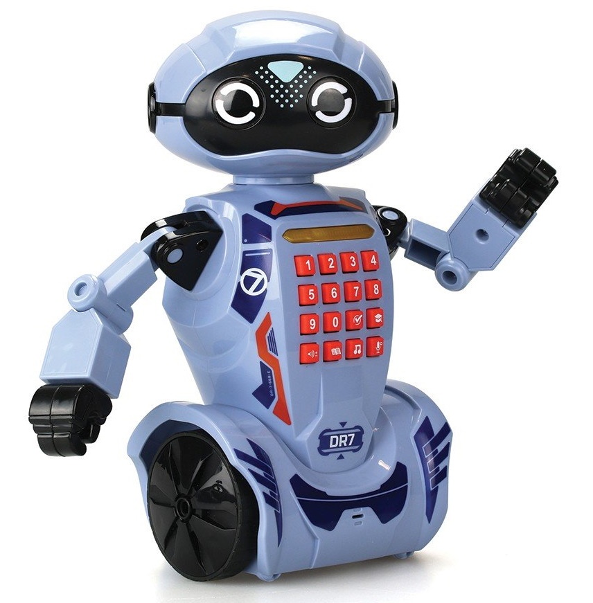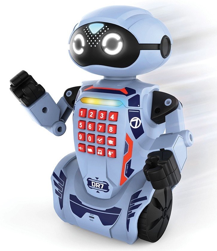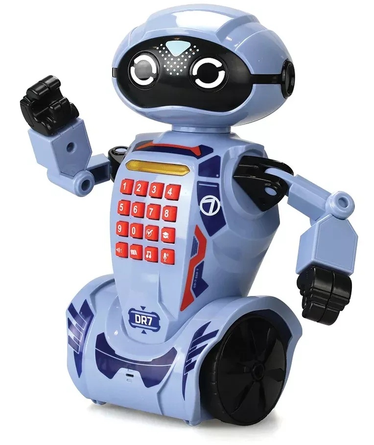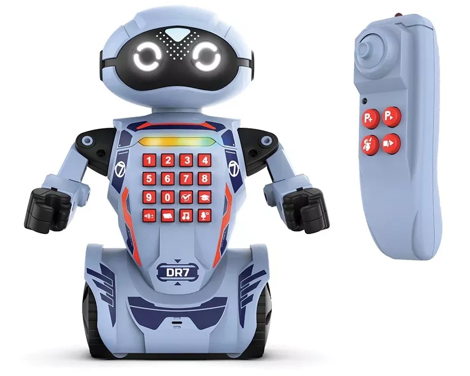Программируемый робот для детей! Robo DR7 - программируемый робот, который может запомнить до 60 шагов. Проверьте свои знания, ответив на 30 вопросов, которые задает робот. Robo DR7 - это робот, который может общаться с вами. Скажите ему что-нибудь, и он ответит вам. Кроме того, он рассказывает истории, так что этот робот - отличный компаньон всегда и везде. DR7 умеет танцевать, играть музыку и выполнять множество других движений.