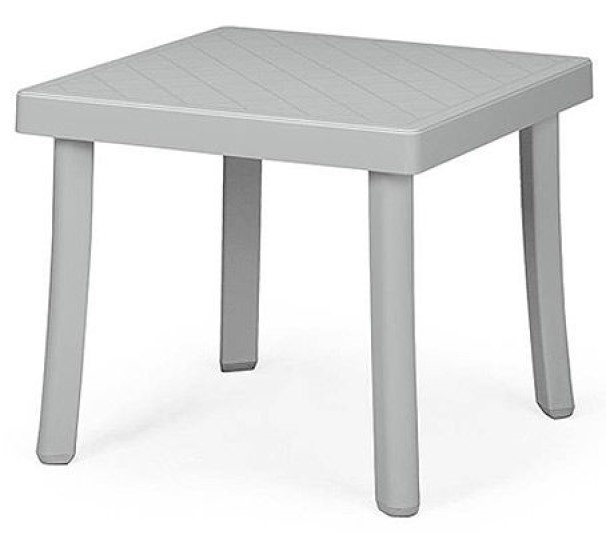 Небольшой квадратный столик размером 46×46 см изготовлен из полипропилена, прекрасно подойдет для шезлонга. Ножки стола нескользящие и имеют трубчатое строение, благодаря чему столик не весит много.