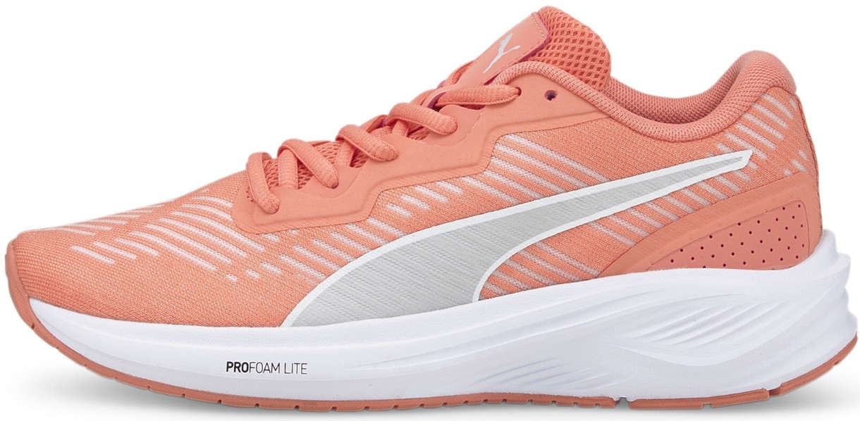На боковой стороне модели расположен отличительный знак PUMA Formstrip — одновременно и стильный брендинг, и дополнительный элемент боковой поддержки. Резиновая подошва Aviator Profoam Sky Carnation выделяется высокими эксплуатационными характеристиками.