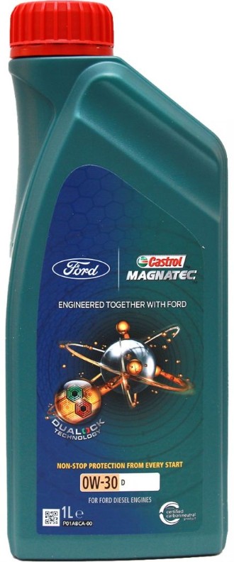 CASTROL Magnatec Professional FORD D 0W-30 – моторное масло синтетического типа. Отличается исключительной эффективностью применения. Продукт разрабатывался при участии ведущих специалистов корпораций Castrol и Ford. Создан для использования с дизельными, а также турбодизельными моторами новейшего поколения. При этом механизмы должны соответствовать требованиям Euro VI - Duratorq 2,0L (DW10F). Также масло можно использовать в некоторых моделях дизельных моторов.