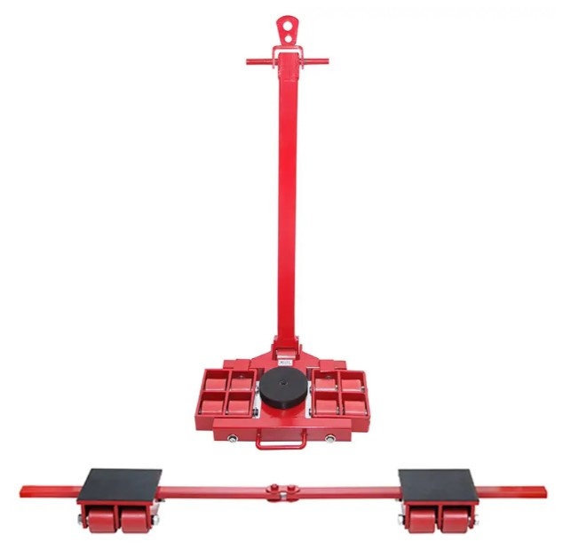 Роликовая система состоит из двух частей: переднего роликового блока с поворотной платформой и ручкой управления и задних опор (двух роликовых блоков со соединительной планкой). Для перемещения груза его необходимо поднять домкратом на 120 мм, после чего завести под него роликовые блоки. После установки груза на роликовые блоки он готов к перемещению.