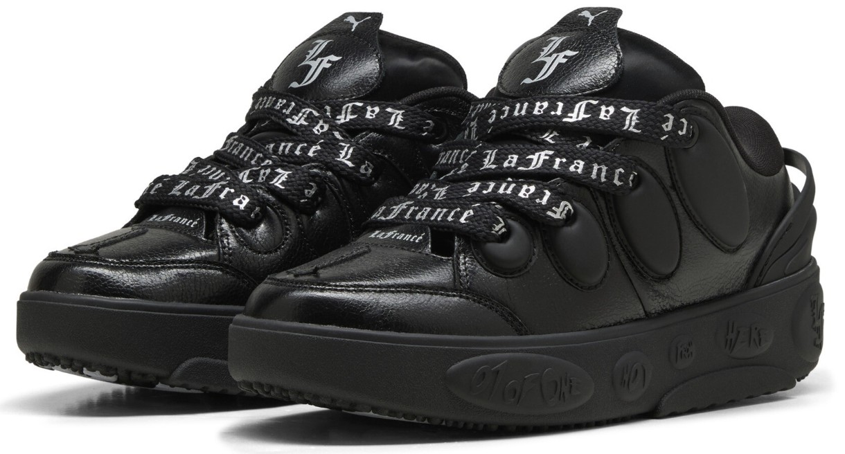 Вы будете блистать. Вдохновленные стилем скейтеров, эти массивные кроссовки привлекают внимание слоганами Ламело на подошве и межподошве, а также его личным брендом LaFrancé. Эта модель в черном варианте привлечет к вам внимание блестящей кожей. Система шнуровки LaFrancé добавляет еще один популярный элемент стиля в ваш повседневный гардероб.