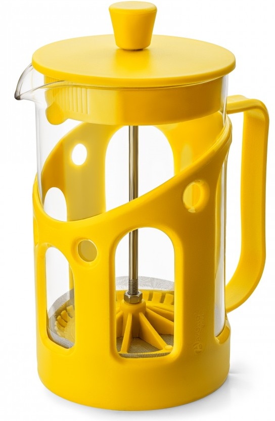 Вы можете регулировать время приготовления напитка, а также комбинировать его с различными наполнителями (специи, травы, фрукты, ягоды). Заваривание кофе в поршневом чайнике позволяет раскрыть настоящий вкус и аромат этого напитка, ощутить все нюансы и оттенки изысканных сортов кофе. Металлический сетчатый фильтр обеспечивает высокое качество фильтрации напитка и позволяет использовать ингредиенты мелкого помола. Каркас изделия защищает колбу от ударов, а кухонные поверхности от воздействия высокой температуры во время приготовления напитков. При заваривании вам не придётся использовать дополнительно подставку под горячее. Ручка чайника не нагревается и обеспечивает безопасность использования. Крышка изделия имеет дополнительный фильтр для задерживания крупных частиц.