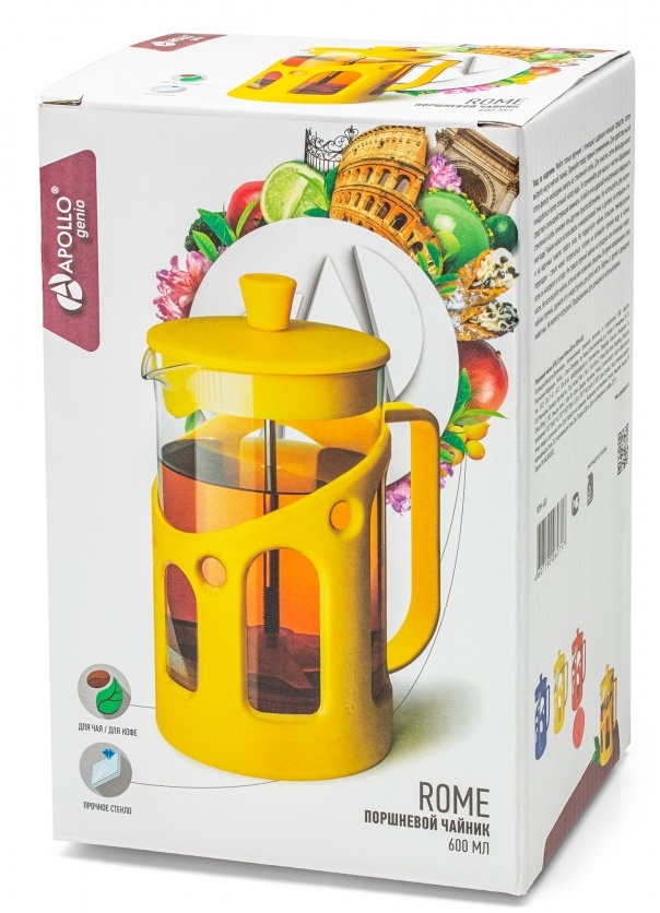 Поршневой чайник Rome прекрасно подойдет для заваривания кофе, чая, травяных настоев и даже какао.