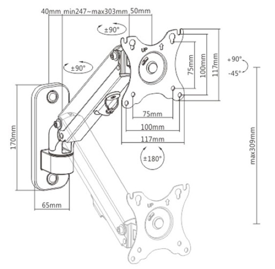 Стандарт VESA75x75, 100x100 мм