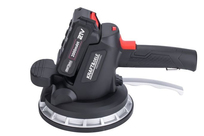 Беспроводная виброприсоска для укладки плитки польской марки Kraft&Dele, модель KD10458 . Позволяет легко размещать плитку с помощью присоски и может поднимать предметы весом до 150 кг . Кроме того, благодаря функции вибрации удаляются остаточные пузырьки воздуха, которые могут привести к появлению трещин, обеспечивая тем самым прочное и долговечное соединение плитки с основанием.