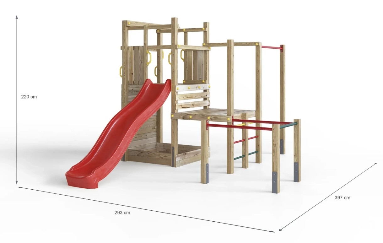 Комплектациягорка, лестница, скалодром, песочница, турник