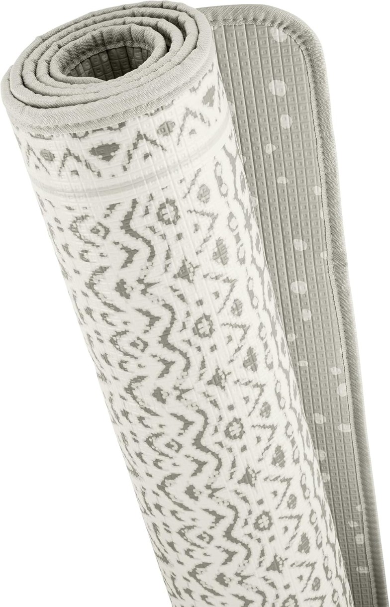 Наш нейтральный двусторонний игровой коврик, разработанный для создания стильных и комфортных для малышей напольных покрытий, предлагает два варианта дизайна: от узора, вдохновлённого икатом, до мелкого точечного принта, создавая два декоративных образа в одном. Этот коврик из пеноматериала, не содержащий ПВХ, легко ухаживать и создаёт большое мягкое игровое пространство, которое одинаково хорошо подходит как для гостиной, так и для детской комнаты. Просто сверните его для удобной транспортировки и хранения.