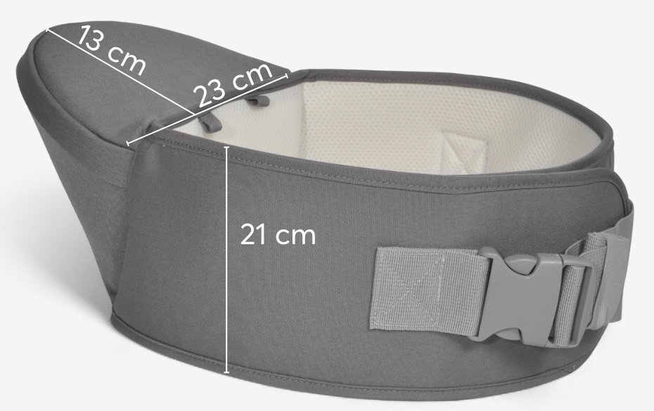 Широкий пояс и бедренное сиденье помогают равномерно распределять вес ребенка от талии до верхней части спины.