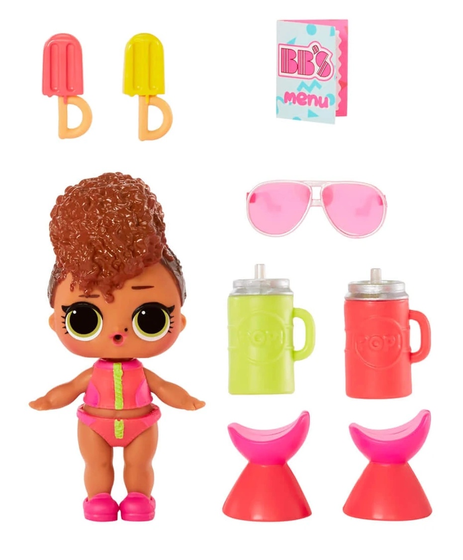 Вас приглашает в гости ЛЕДИ ВОЛНА, в ее пляжном снек-баре можно полакомиться мороженым, выпить лимонада или просто потусоваться В комплекте эксклюзивная куколка L.O.L. SURPRISE! Абсолютно новая распаковка с сюрпризами. В комплекте барная стойка, стулья, меню, мороженое и стаканы лимонада Новинка! Наборы серии "маленькие комнатки" сочетаются с игровым меганабором L.O.L. SURPRISE! серии "O.M.G. - Роскошный особняк с сюрпризами и дополняют его (подробнее ищите в инструкции)
