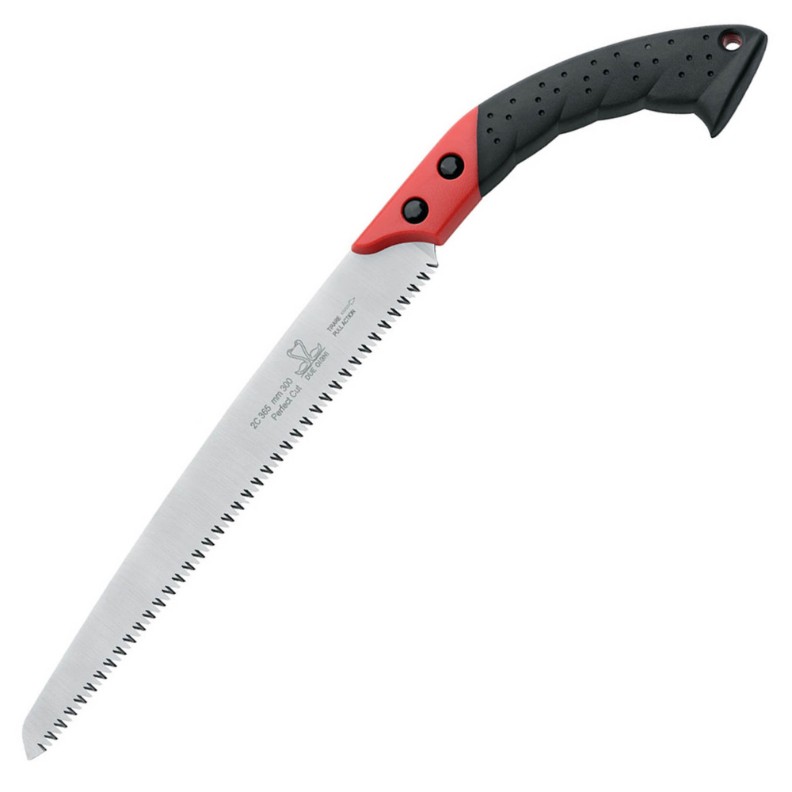 Fox/Due Cigni 365/30 — нескладная пила, найдет место в любом садовом сарае. Пила работает эффективно благодаря острым зубьям на полотне из углеродистой стали SK5. Рукоять изготовлена из прочного эластомера, этот материал не позволяет рукам соскальзывать и делает работу этой пилой ещё более безопасной.
