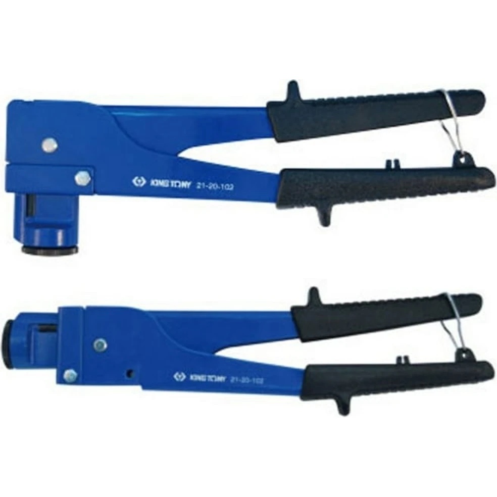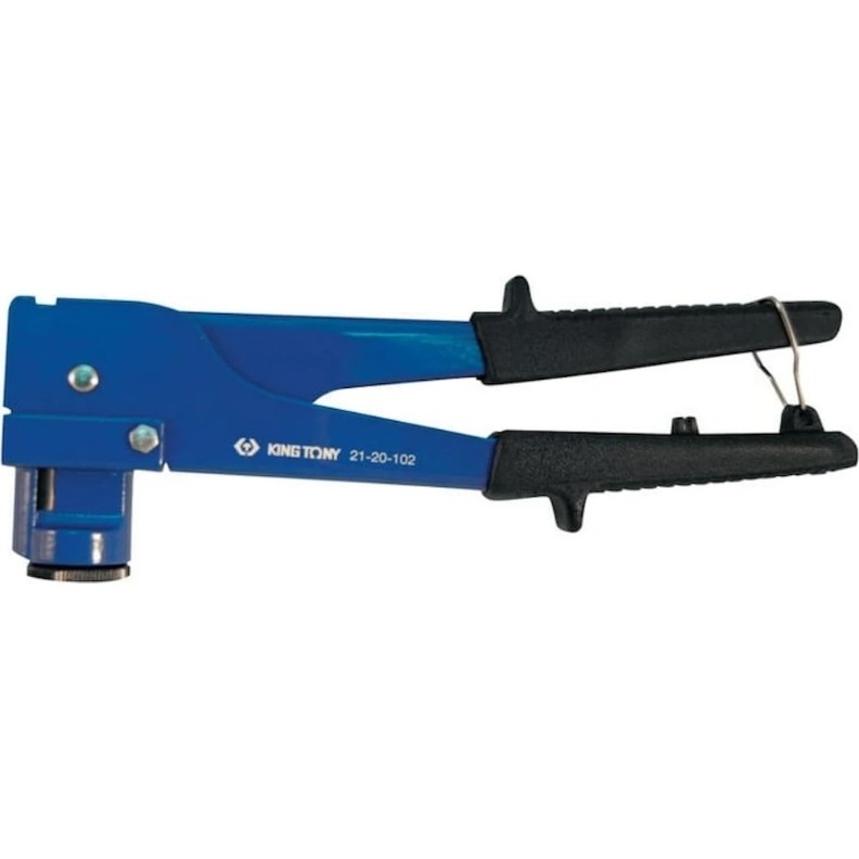 Поворотный заклепочник (2.4-4.8 мм) KING TONY 21-20-102 обеспечивает прочное и долговечное соединение тонких заготовок или листового металла. Рельефная поверхность и специальные упоры рукоятей исключают выскальзывание приспособления из рук пользователя. Петля из проволоки фиксирует модель в сложенном состоянии и способствует удобству хранения.